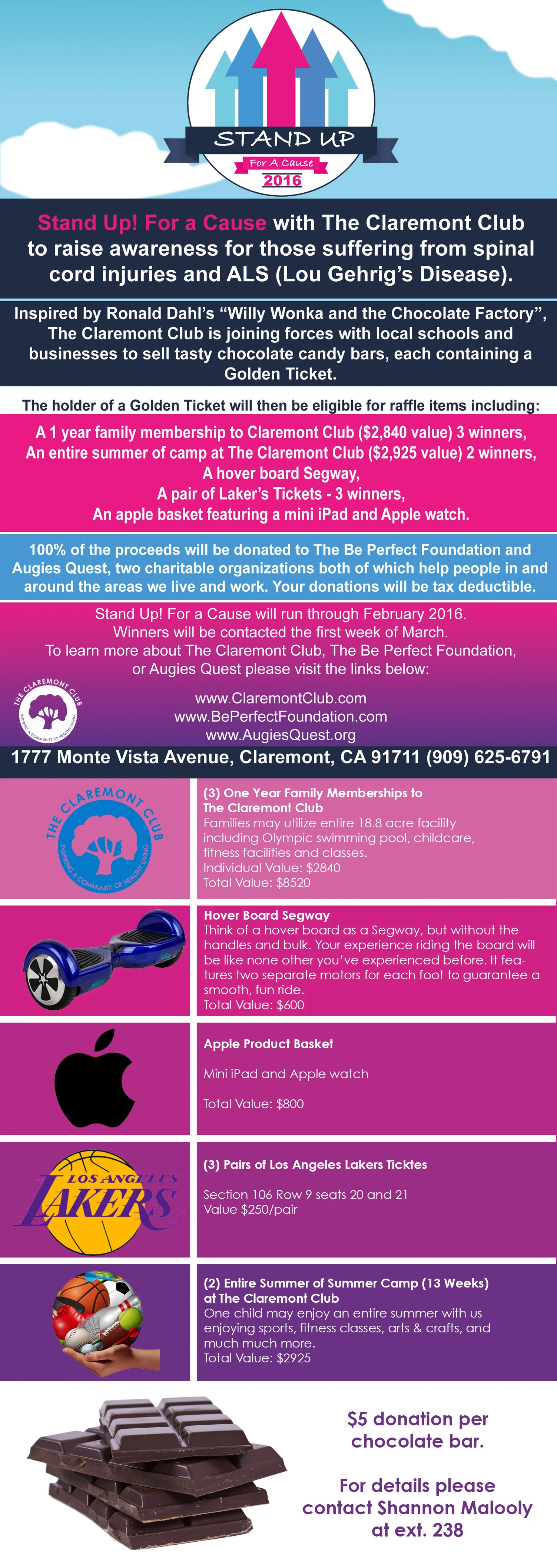 Stand Up! For a Cause Buy a chocolate bar for your chance to win a great prize! And... proceeds go to the foundation! Be Perfect FoundationFebruary 4, 2016Comment Facebook0 Twitter 0 Likes