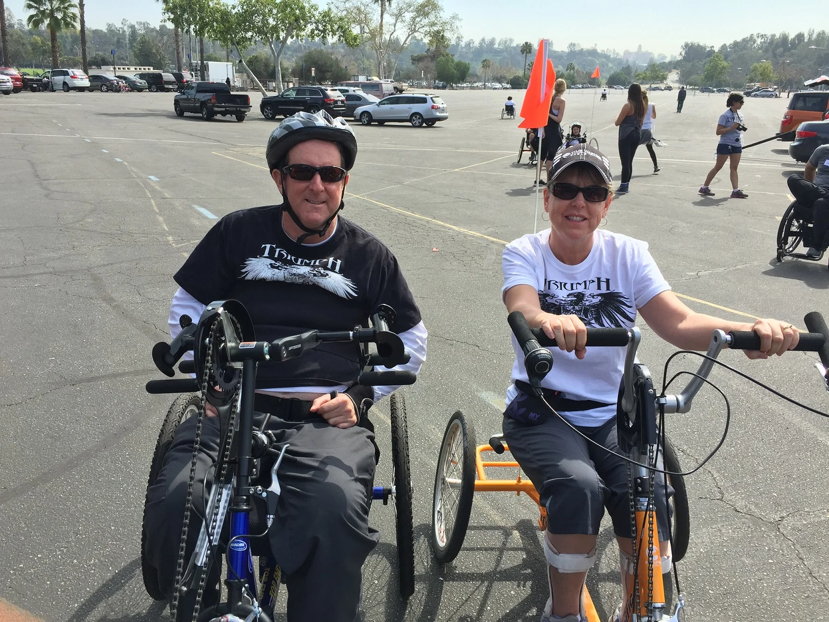 What are some goals that you have set for yourself, that you are proud to say that you have attained? Working-out over the years at TPS I have been able to regain a lot of my upper body strength and core strength for my trunk control. When I started there I was using a power wheelchair. Over time I was able to use a manual chair every day. That was an important goal for me. At stores and restaurants I am able to push myself up the cut-out ramps from the parking lots to the sidewalks without any assistance. It took a while, but I can also push myself up the ramp from the parking lot to TPS’s front door. It’s a good warm-up before I workout. Also, it was a bicycle accident that caused my Spinal Cord Injury (SCI) as I was an avid bicycle rider. I’m back out there riding again but now it’s on a handcycle. It’s great to be out riding again. It’s a fun way to get in a workout and it keeps my spirits high.